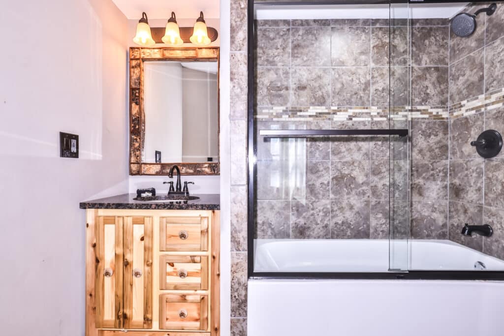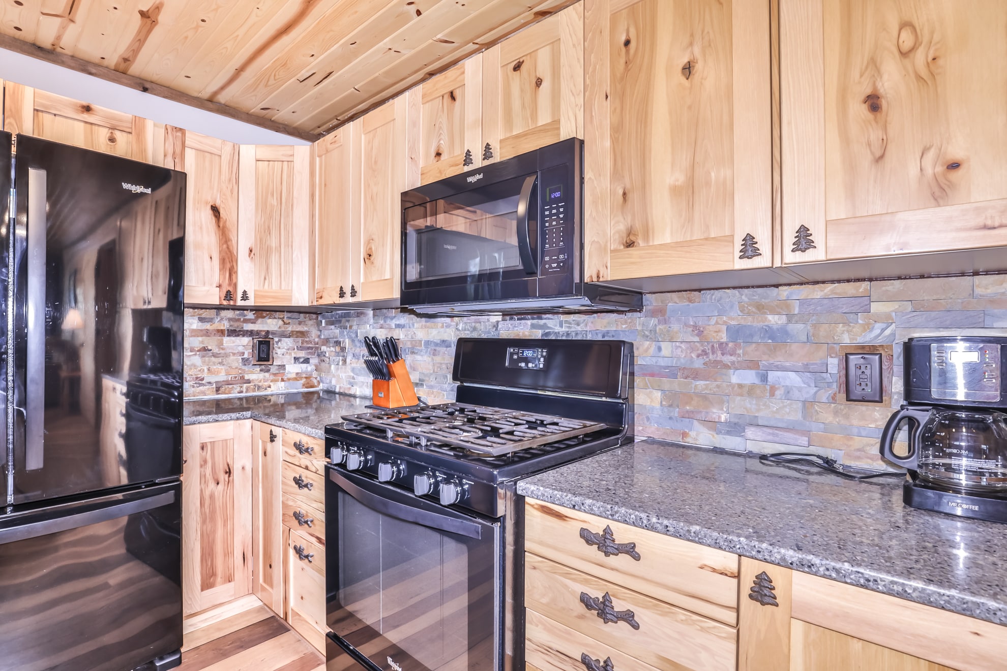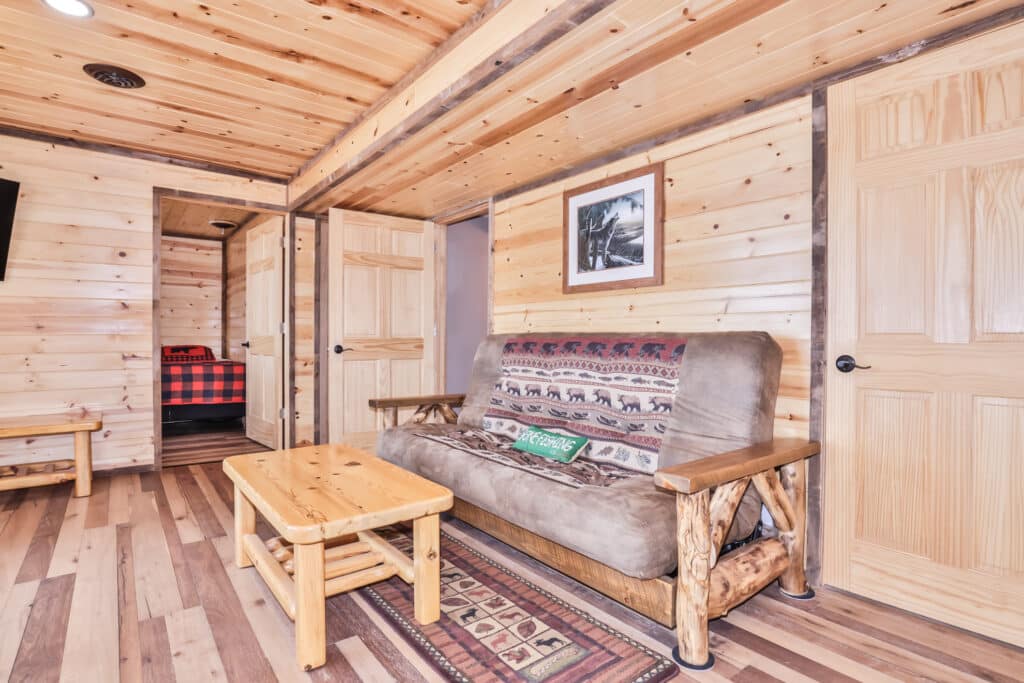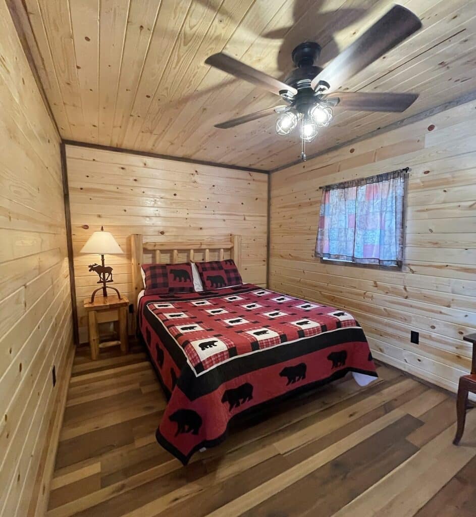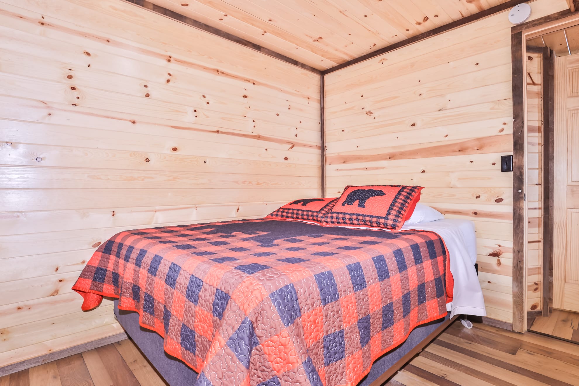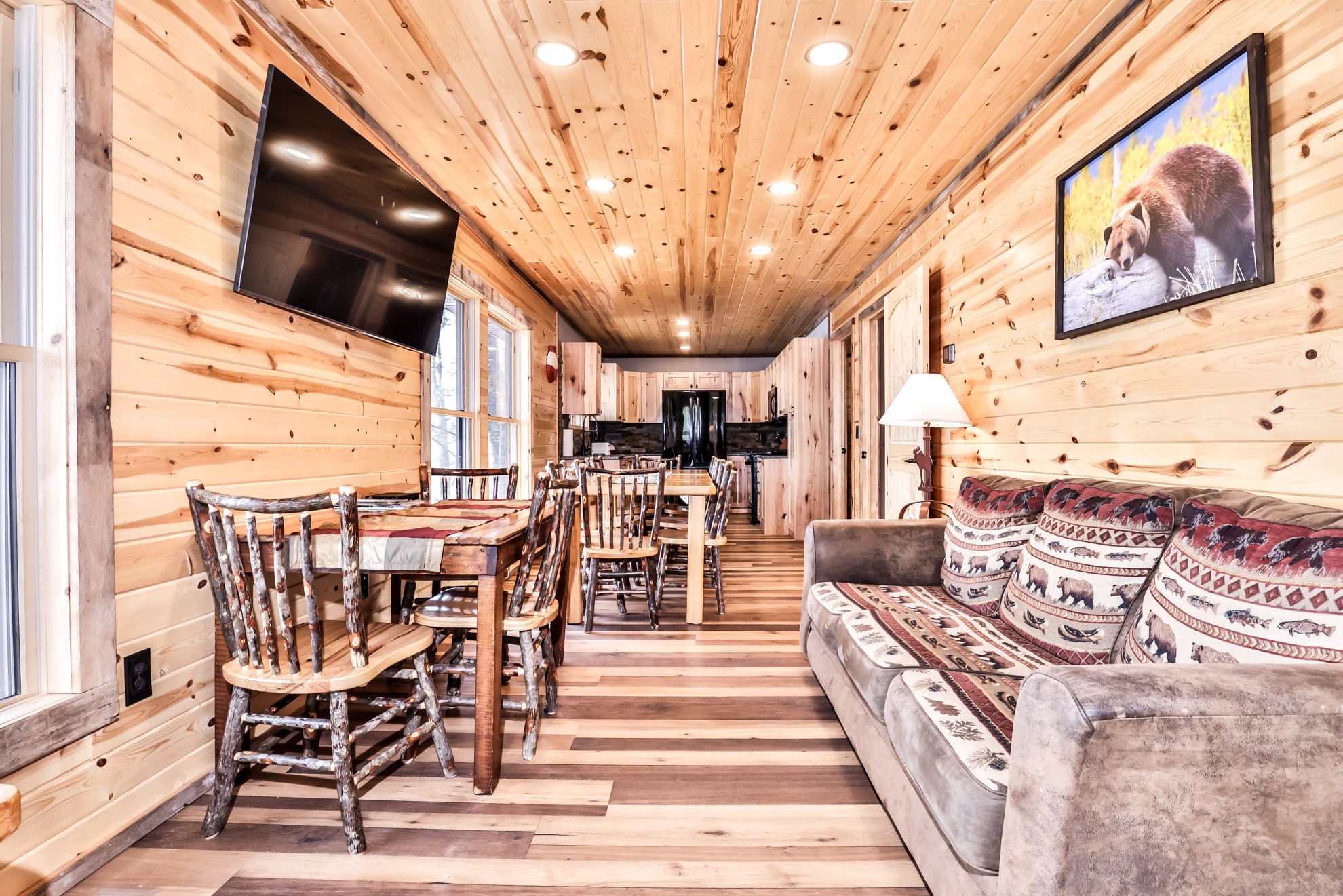 Cabin #3 is two stories with two bedrooms conveniently located on the main level with a full bathroom. The main level features an open-style kitchen, dining, and living room, all glowing in the light from lake-facing bay windows. The lower level, newly remodeled, has three bedrooms and an additional living room with a walkout to the lakefront. Each bedroom has one queen bed, and a sleeper sofa on the lower level has been provided for additional sleeping accommodations.